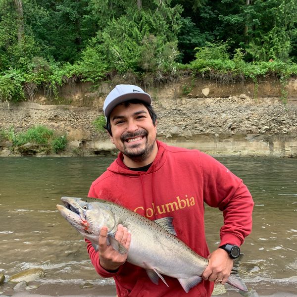 Angling Addicts PNW and Angling Addict Fishing Co Creator Nick Roberts With A Dime Bright Spring Chinook Caught On One Of The Angling Addict Fishing Co Bullet Squid Spinners